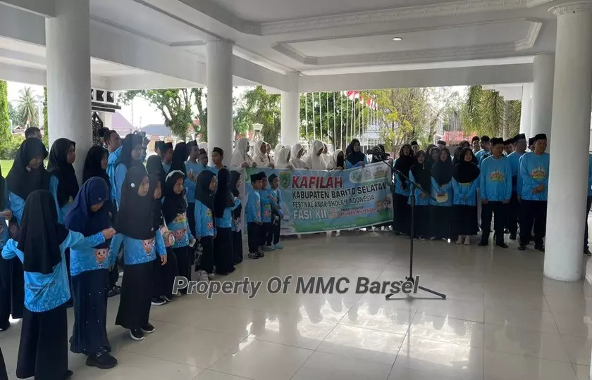 MMCBarsel - Buntok-Sebanyak 120 peserta Kafilah Festival Anak Shaleh Indonesia (FASI) dari Kabupaten Barito Selatan dilepas oleh Pj Bupati Barito Selatan, H. Deddy Winarwan diwakili Sekretaris daerah Kab Barsel Edy Purwanto di Lobi Utama Kantor Bupati Barsel, Selasa (8/10/2024). Mereka akan mengikuti FASI XII tingkat Provinsi Kalimantan Tengah yang akan dilaksanakan di Palangka Raya pada tanggal 10-13 Oktober 2024.