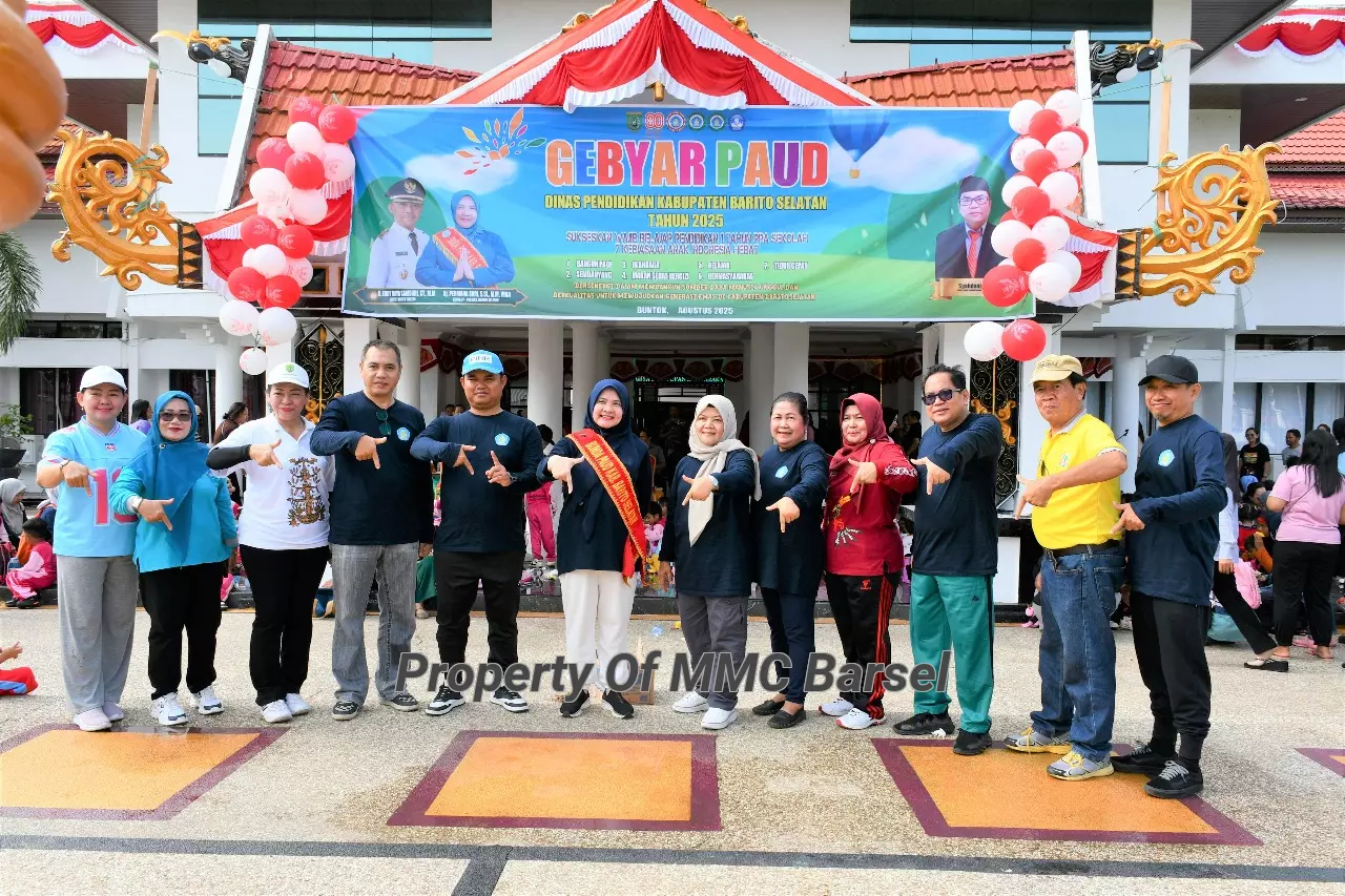 MMCBarsel-Buntok- Bunda PAUD Barito Selatan Hj. Permana Sari membuka secara resmi acara Gebyar PAUD Kabupaten, bertempat di Halaman Kantor Bupati Barito Selatan, Sabtu (30/08/25). Kegiatan ini diisi dengan senam bersama yang dinamakan Senam Anak Indonesia Hebat.