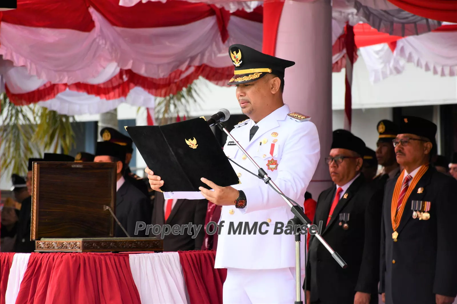 MMCBarsel-Buntok- Bupati Barito Selatan, H. Eddy Raya Samsuri bertindak sebagai inspektur upacara pengibaran bendera merah putih dalam rangka memperingati detik-detik Proklamasi Kemerdekaan Republik Indonesia ke-80 Tahun 2025 bertempat di halaman Kantor Bupati Barito Selatan, Minggu (17/8/2025) . Peringatan HUT kemerdekaan Tahun 2025 dengan tema “Bersatu Berdaulat Rakyat Sejahtera Indonesia Maju" berlangsung khidmat dan lancar.