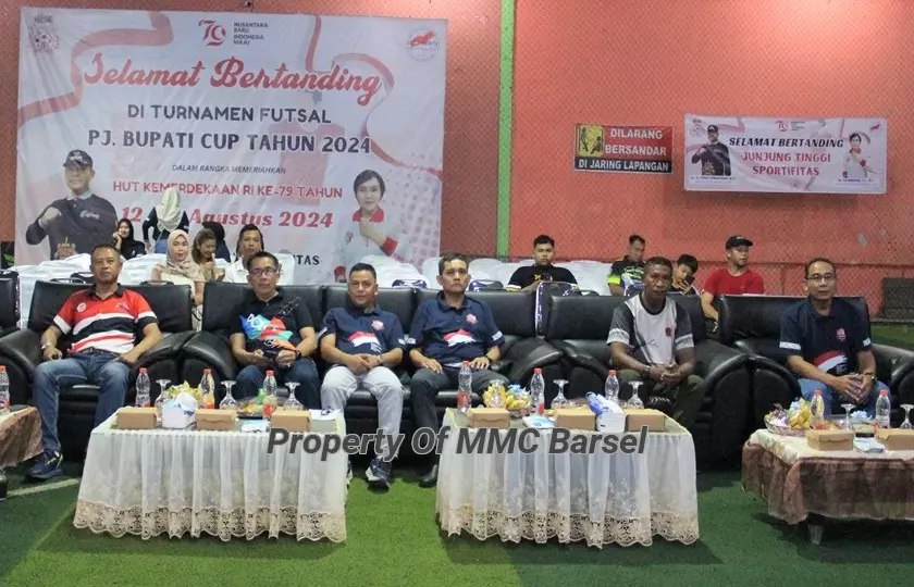 Tampak hadir unsur Forkopimda, Kepala Perangkat Daerah serta pendukung tim futsal (diskominfobarsel//SR1) materi, foto : BU5, Z4L.