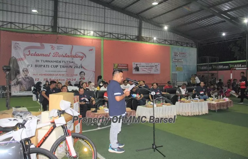 MMCBarsel-BUNTOK- -BUNTOK- Turnamen futsal yang diikuti 32 klub futsal dengan total hadiah 35 juta rupiah resmi ditutup oleh Asisten Perekonomian dan Pembangunan Rahmat Nuryadin mewakili Penjabat (Pj) Bupati Barito Selatan H. Deddy Winarwan bertempat di Gedung Sinar Futsal Buntok, Senin (19/8/2024).