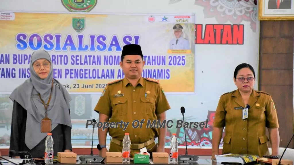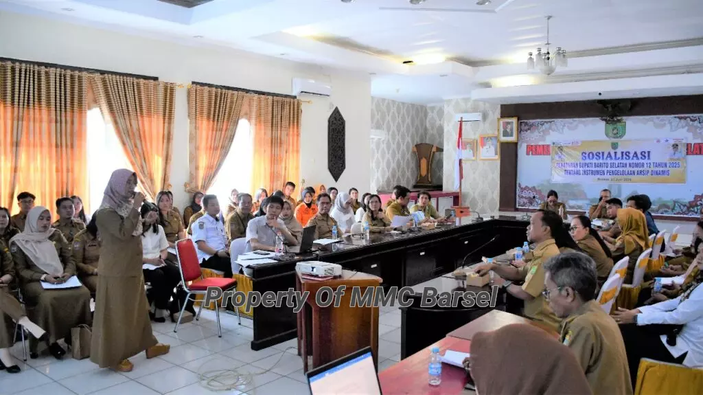 MMCBarsel-Buntok-Plt. Asisten Administrasi Umum Setda Barsel, Eko Hermansyah membuka secara resmi kegiatan Sosialisasi Perbub Barsel Nomor 12 Tahun 2025 Tentang Instrumen Pengelolaan Arsip Dinamis di lingkup Pemkab Barsel di Aula Sekretariat Daerah, Senin (23/06/25). Peserta Pengelola Arsip berjumlah 74 orang dari seluruh OPD termasuk dari RSUD Jaraga Sasameh dan PDAM (BUMD).