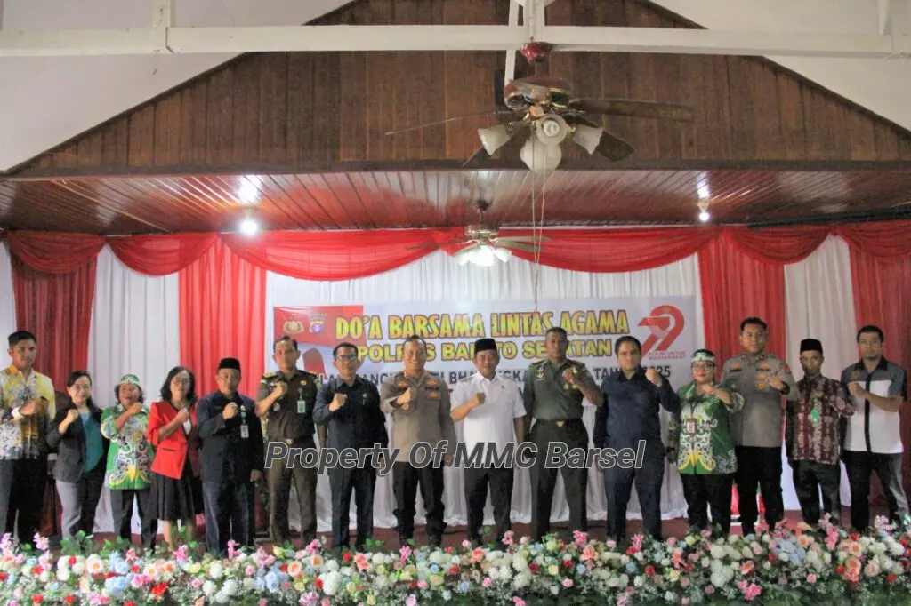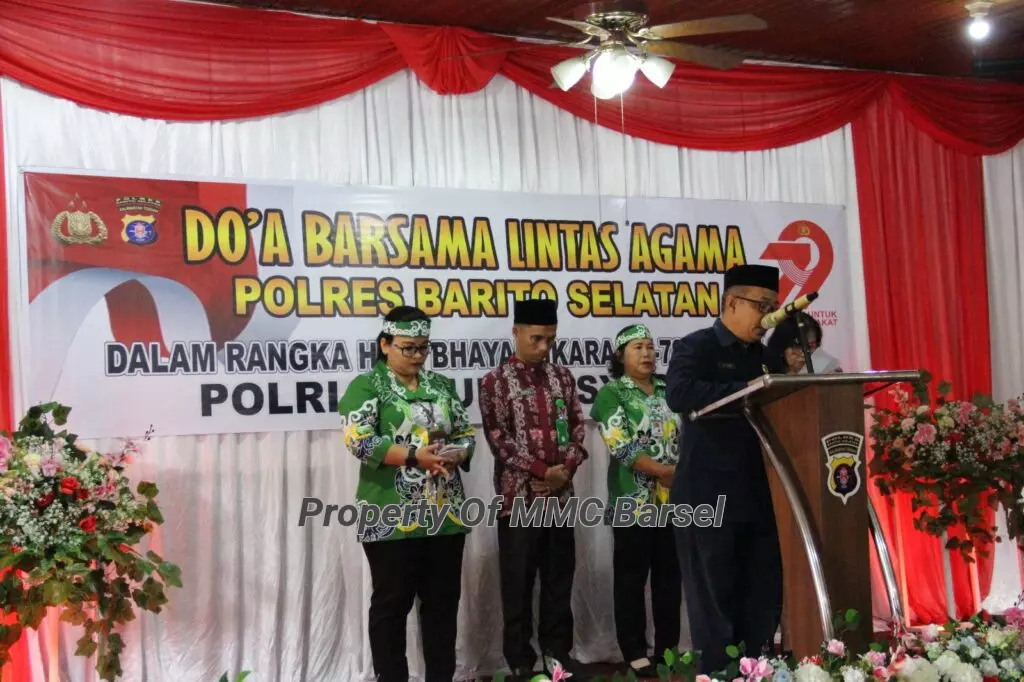 MMCBarsel-Buntok-Wakil Bupati Barito Selatan ( Wabup Barsel ) Khristianto Yudha menghadiri kegiatan do'a bersama lintas agama dalam rangka Peringatan Hari Bhayangkara Ke 79 Tahun 2025 yang di adakan oleh Polres Barito Selatan bertempat di Aula Mako Samapta Polres Barito Selatan Jalan Tugu No 14 Buntok, Rabu (25/06/05).Kepala Kepolisian Resor Barito Selatan, AKBP Jecson Ricsko Hutapea dalam sambutannya mengatakan kegiatan ini merupakan suatu rangkaian kegiatan Hari Bayangkara ke-79 Tahun 2025.