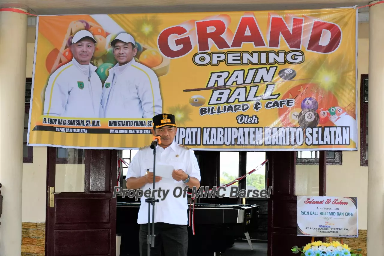 MMCBarsel-Buntok-Wakil Bupati Barito Selatan Khristianto Yudha menghadiri acara peresmian Rain Ball Billiard and Café berlokasi strategis di Taman Iring Witu Buntok, Rabu (13/8/2025). Khristianto Yudha menyampaikan apresiasi dan ucapan selamat kepada seluruh jajaran manajemen Rain Ball Billiard and Café atas dibukanya tempat ini.