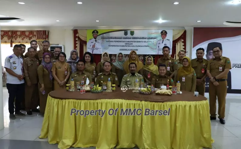 MMCBarsel - Buntok. Pemerintah Kabupaten Barito Selatan (Pemkab Barsel) bersama Pemerintah Kabupaten (Pemkab) Hulu Sungai Utara (HSU) lakukan penandatangan kesepakatan bersama pengendalian inflasi di Mess Negara Dipa Amuntai, Selasa (11/07/2023).