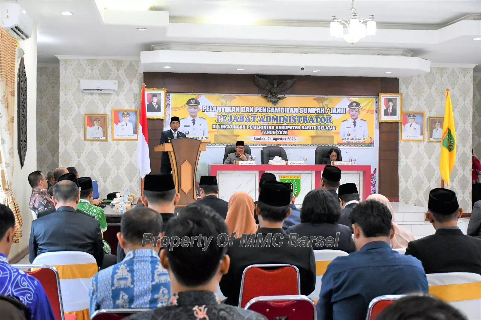MMCBarsel-Buntok- Wakil Bupati Barito Selatan Khristianto Yudha melantik dr. Dadang Baskoro Nugroho sebagai Pj Direktur Rumah Sakit Umum Daerah (RSUD) Jaraga Sasameh Buntok, di Aula Kantor Bupati Barito Selatan, Kamis (21/8/2025). Acara dihadiri oleh Ketua DPRD Kab Barsel, HM Farid Yusran, pj Sekretaris Daerah Kab Barsel Ita Minarni, unsur Forkopimda beserta Kepala Perangkat Daerah.