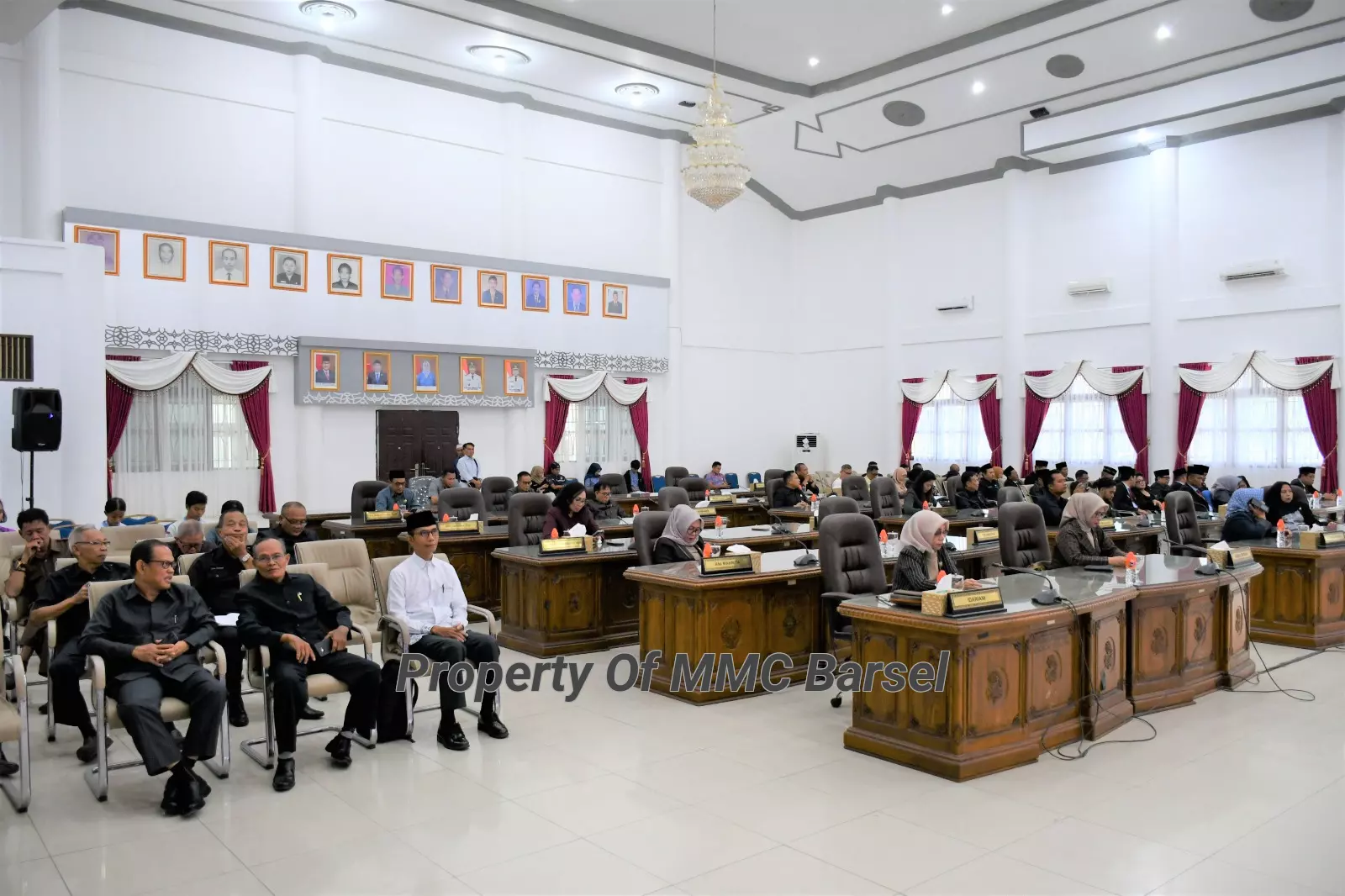Rapat yang dipimpin Ketua DPRD Barsel, HM. Farid Yusran serta dihadiri pimpinan DPRD, Sekda, kepala OPD, tokoh masyarakat, insan pers dan tamu undangan.
