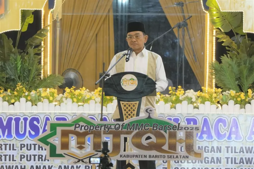 MMCBarsel-Buntok- Wakil Bupati Barito Selatan Khristianto Yudha membuka secara resmi membuka Musabaqah Tilawatil Quran dan Hadits (MTQH) ke-45 Tingkat Kabupaten Barito Selatan (Barsel) di Arena Terbuka Masjid Agung Baiturrahman Buntok, Kamis (2/10/2025).