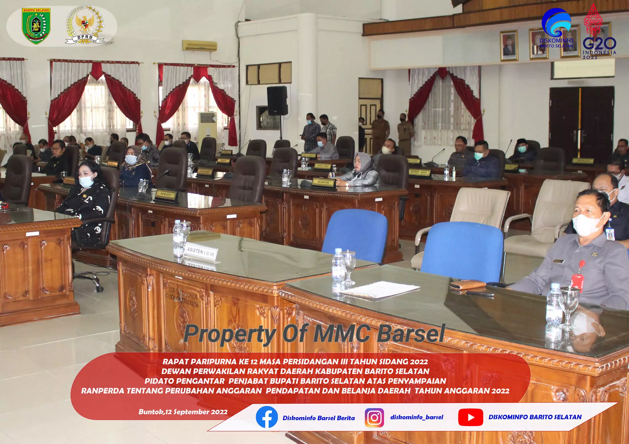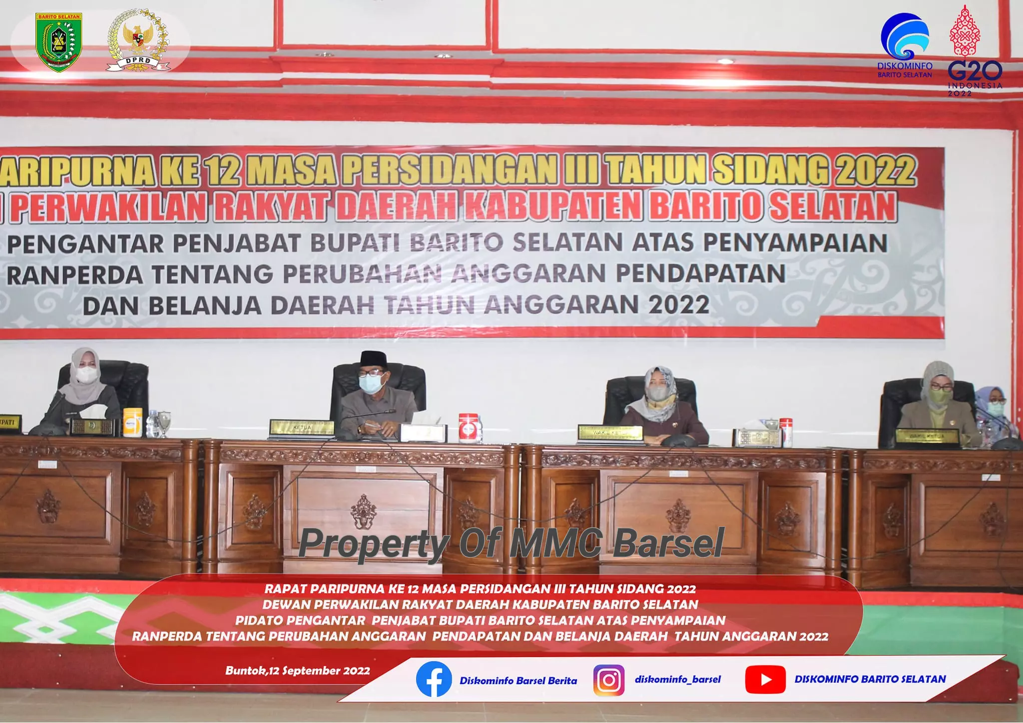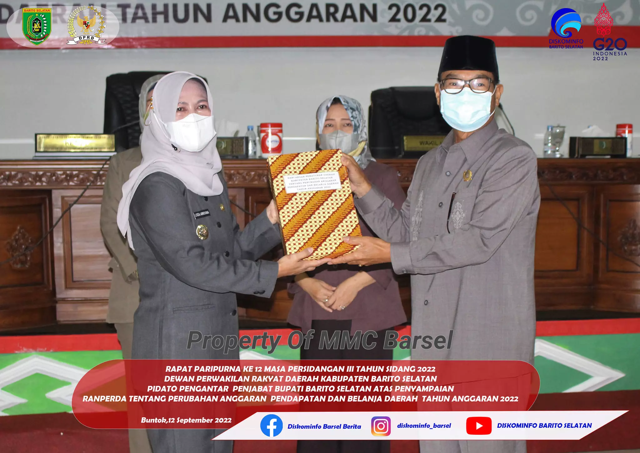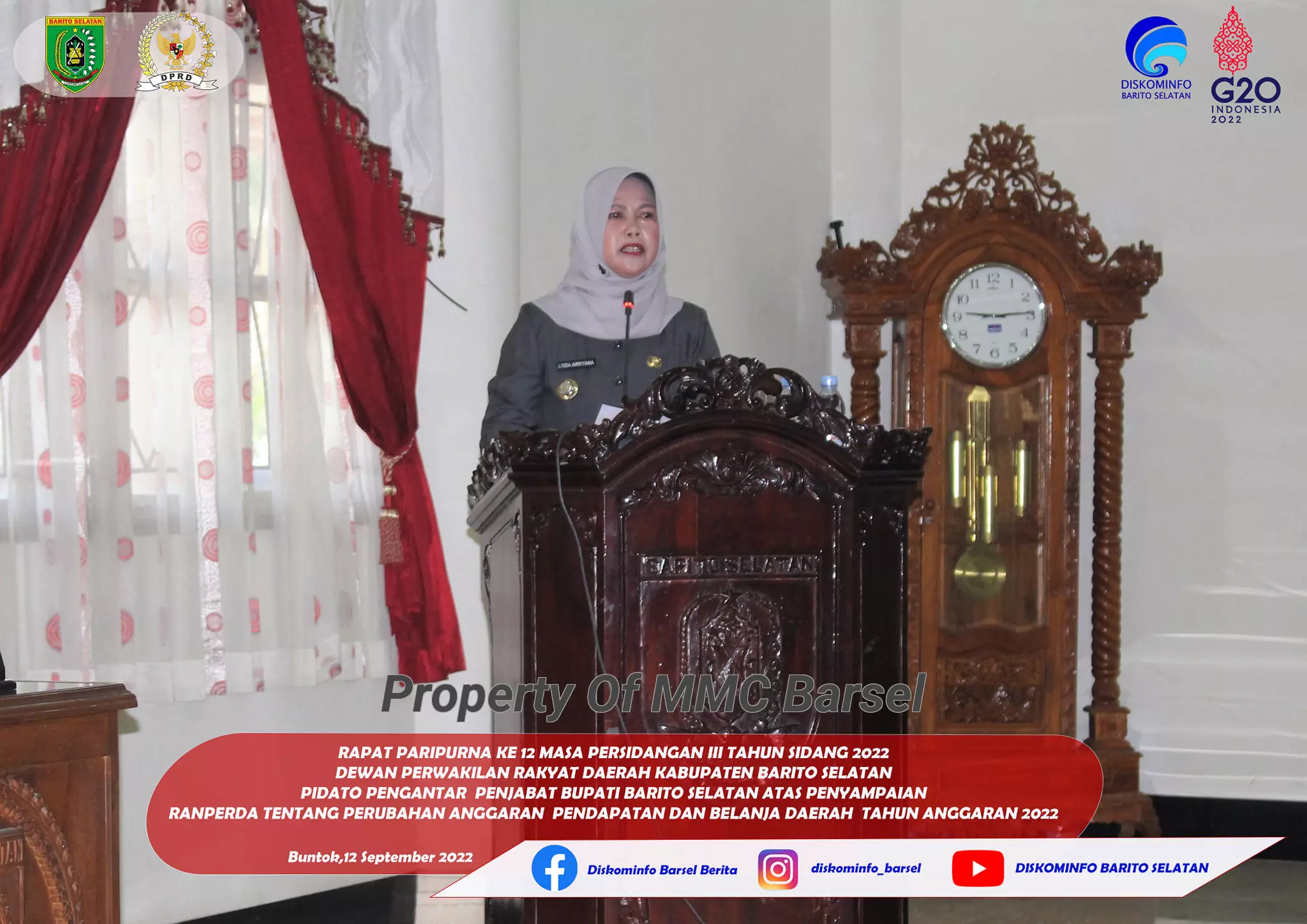 Buntok - Pj. Bupati Barito Selatan Lisda Arriyana, S.Sos, menyampaikan rancangan peraturan daerah Kabupaten Barito Selatan tentang perubahan anggaran belanja daerah Tahun Anggaran 2022. Rapat Paripurna ke-12 masa persidangan III Tahun 2022 yang disusun oleh Badan Musyawarah DPRD Kabupaten Barito Selatan di ruang rapat Paripurna DPRD Kabupaten Barito Selatan Senin (12/9/2022).