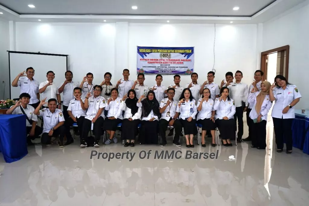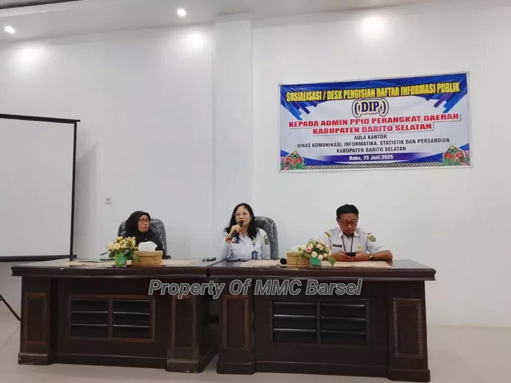 MMCBarsel-Buntok-Pejabat Pengelola Informasi Daerah (PPID) Utama pada Dinas Komunikasi, Informatika, Statistik dan Persandian (DiskominfoSP) Kabupaten Barito Selatan (Kab Barsel) gelar Desk/Sosialisasi Pengisian Daftar Informasi Publik di Aula Kantor DiskominfoSP Kab Barsel, Rabu (25/6/2025).