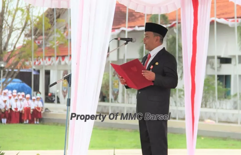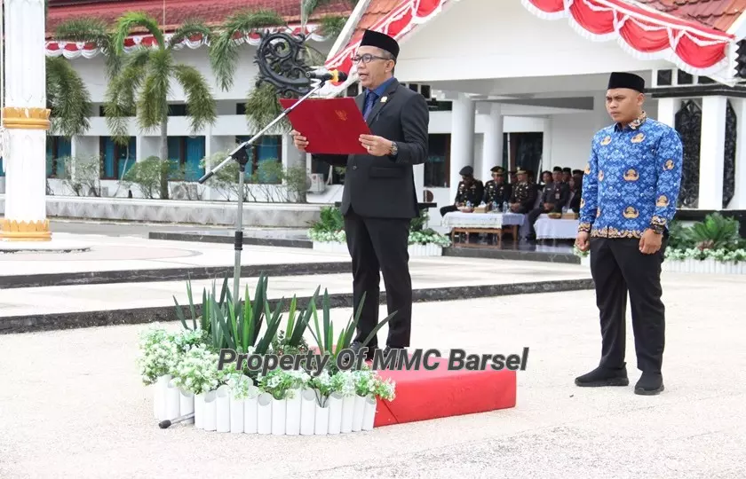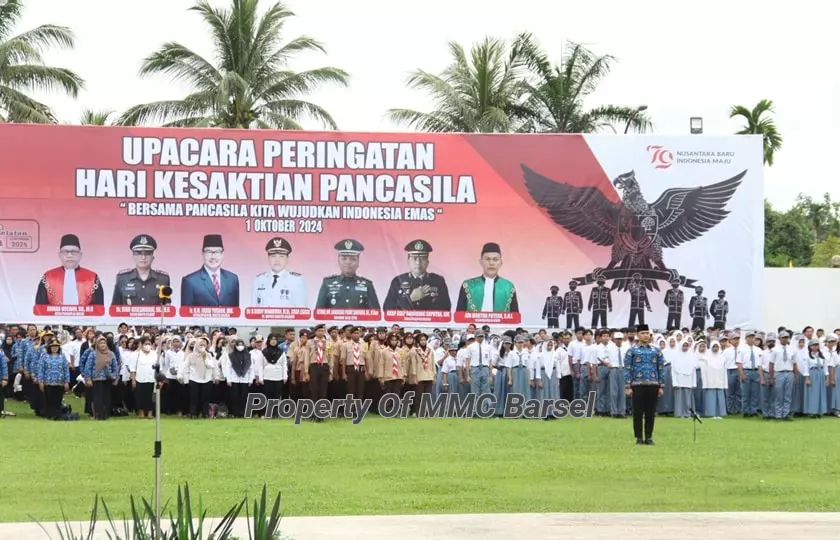 MMCBarsel-Buntok-Asisten Perekonomian dan Pembangunan Sekretariat Daerah Kabupaten Barito Selatan Rahmat Nuryadin bertindak sebagai inspektur upacara peringatan Hari Kesaktian Pancasila bertempat di halaman kantor Bupati Barito Selatan Buntok, Selasa (1/10/2024). Tema 'Bersama Pancasila Kita Wujudkan Indonesia Emas' memiliki arti yang sangat penting, terutama dalam mempersiapkan generasi muda untuk menghadapi tantangan global di masa depan.