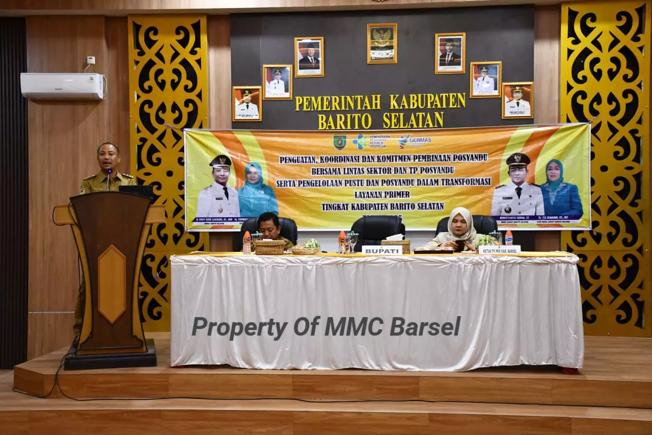 MMCBarsel-Buntok- Bupati Barito Selatan (Barsel) Eddy Raya Samsuri menghadiri Kegiatan Penguatan, Koordinasi dan Komitmen Pembinaan Posyandu Bersama Lintas Sektor Dan TP Posyandu Serta Pengelolaan Pustu Dan Posyandu Dalam Transformasi Layanan Primer Tahun 2025 bertempat di Aula Setda Kabupaten Barito Selatan, Senin (27/10/25).