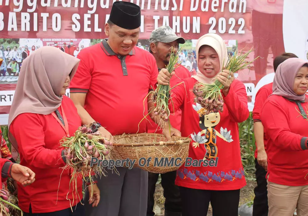 Edy Purwanto selaku ketua Tim Pengendalian Inflasi Daerah Kab. Barsel dalam laporannya menyampaikan panen perdana bawang ini kurang lebih ¼ Hektar dengan varietas bibit bawang merah Bima Brebes, yang bisa dipanen dalam waktu kurang lebih 60 hari.