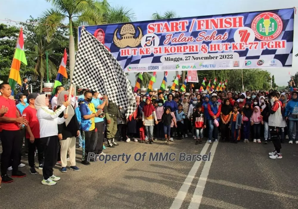 Dalam rangka memperingati Hari Ulang Tahun (HUT) Korps Pegawai Republik Indonesia (KORPRI) ke-51, HUT Persatuan Guru Republik Indonesia (PGRI) ke-77 dan Hari Guru Nasional tahun 2022, Pemerintah Kabupaten Barito Selatan (Pemkab Barsel) menggelar kegiatan Jalan Sehat dan Senam Bersama bertempat di Taman Iring Witu Buntok, Minggu (27/11/2022).