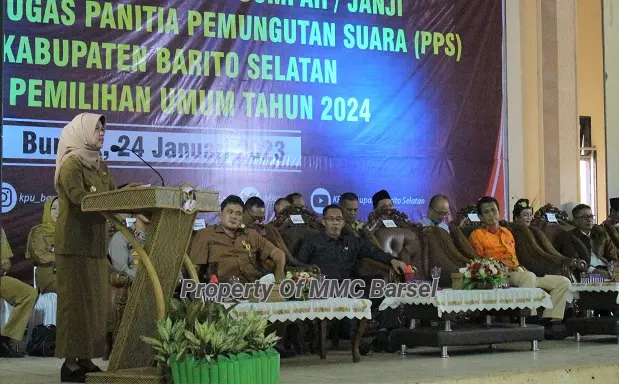 Sementara itu, Penjabat (Pj) Bupati Barsel Lisda Arriyana dalam sambutannya mengatakan bahwa Pemkab Barsel siap dan memberikan dukungan untuk mensukseskan penyelengaraan pemilihan umum tahun 2024. Bentuk dukungan tersebut salah satunya Pemkab Barsel telah memfasilitasi pantia pemilihan kecamatan (PPK) dengan penugasan staf sekretariat PPK untuk memberikan dukungan teknis administrasi terhadap pelaksanaan tugas PPK.