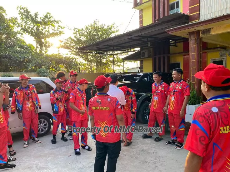Kehadiran Pj Bupati Barsel disambut oleh ketua Komite Olahraga Nasional Indonesia (KONI) Barsel Ida Riani, kepala perangkat daerah, para pendamping beserta pelatih dan seluruh atlet(diskominfobarsel//5R1).