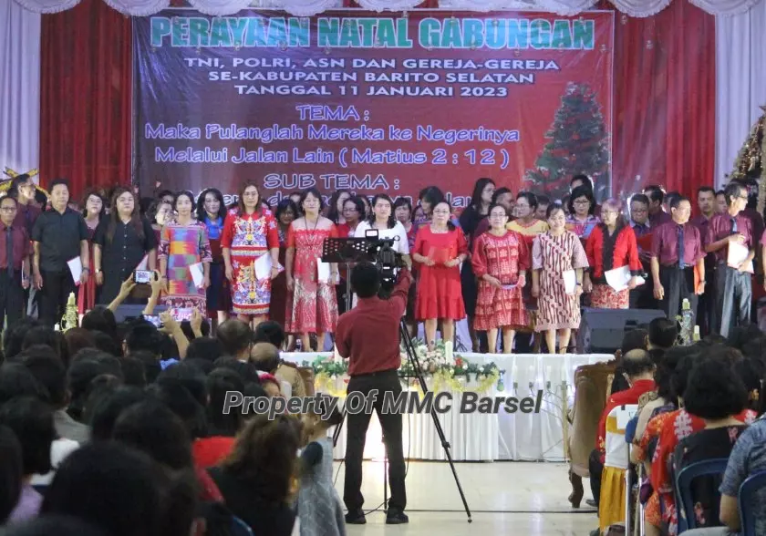 MMCBarsel – Buntok – Pemerintah Kabupaten Barito Selatan (Pemkab Barsel) menggelar Perayaan Natal Gabungan TNI, POLRI, ASN dan Gereja-Gereja se-Kabupaten Barito Selatan bertempat di Gedung Pertemuan Umum (GPU) Jaro Pirarahan Buntok, Rabu (11/1/2023).