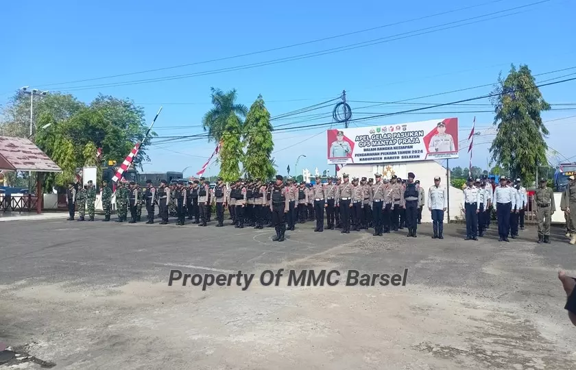 Apel gelar pasukan ops mantap Praja 2024 dipimpin oleh Kapolres Barsel AKBP Asep Bangbang Saputra, ditegaskan bahwa pentingnya peran Polri dalam menjaga keamanan dan ketertiban masyarakat selama proses pilkada di Barsel tahun 2024.