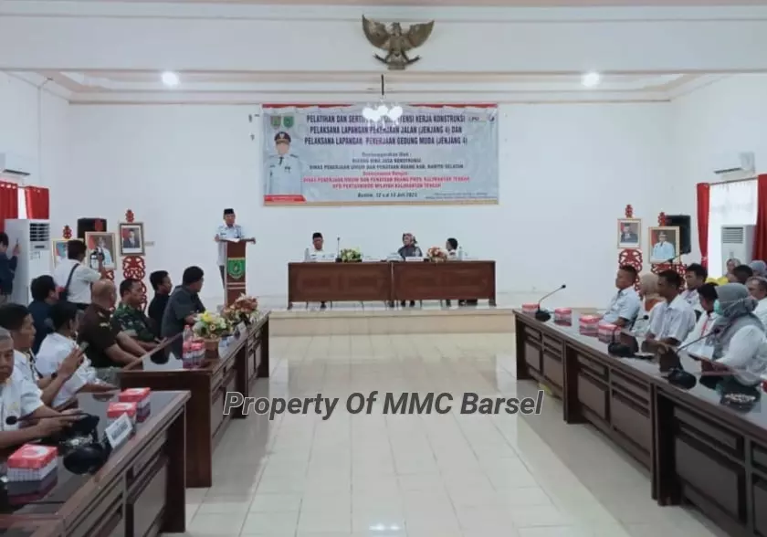 MMCBarsel - Buntok - Pelatihan dan uji Sertifikasi Kompetensi Kerja (SKK) konstruksi dalam mendukung peningkatan kompetensi konstruksi yang dilaksanakan oleh bidang bina jasa konstruksi pada Dnas Pekerjaan Umum dan Penataan Ruang (DPUPR) Kabupaten Barito Selatan Tahun 2023”. Kegiatan tersebut dihadiri langsung oleh Penjabat (Pj) Bupati Barito Selatan H. Deddy Winarwan di aula kantor Bappeda, Rabu (12/7/2023).
