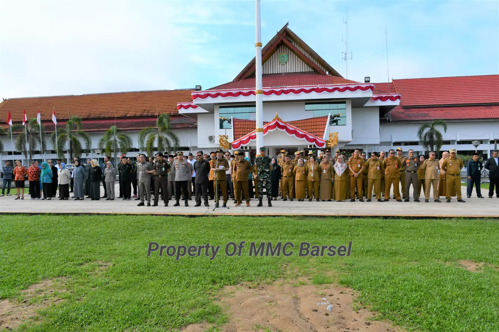 MMCBarsel-Buntok-Bupati Barito Selatan Eddy Raya Samsuri Pimpin Apel Gabungan Dan Do’a Bersama Lintas Agama bertempat di Halaman Kantor Bupati Barito Selatan, Senin, (01/09/25).
